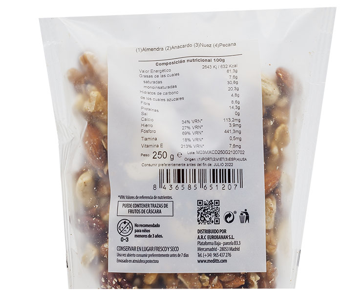 Aumentar Mix Frutos Secos Crudo Meditts 250 gr 1 Cantidad - + 3,75 € A la cesta. Compra en 1 click Favoritos Comparar Entrega a domicilio en dos horas gratis desde 25 euros